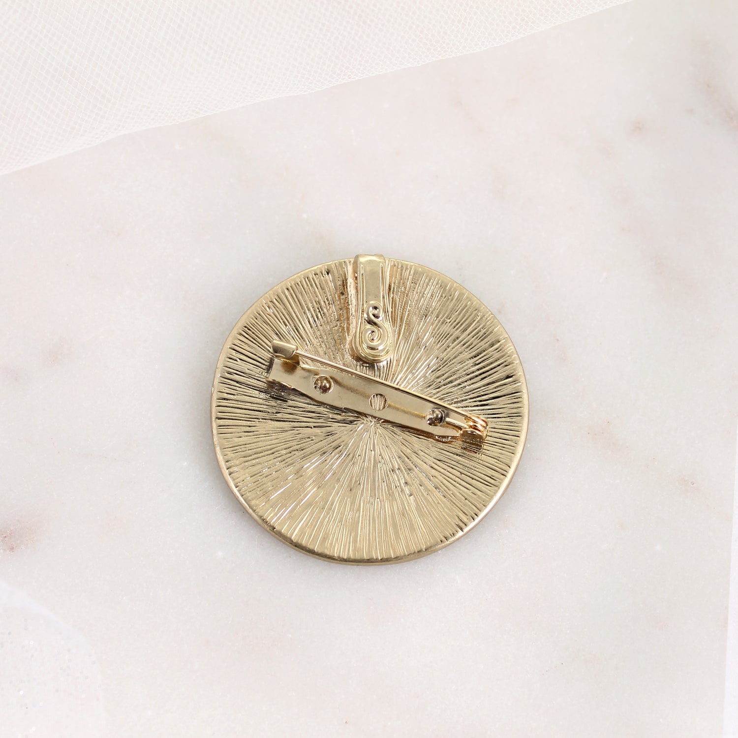 Gold tone magnetic clasp pin/pendant featuring an enamel and gold Christmas nativity scene. A classic Christmas piece! Pin/pendant measures 2”.