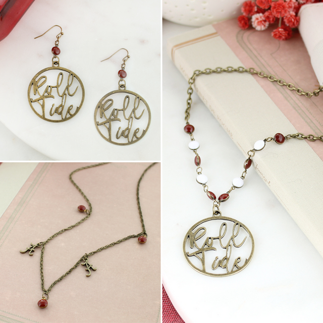 A 3-piece coordinating collection with necklaces designed for layering or you can wear separately! All pieces feature a vintage finish and enamel accents in coordinating school colors.