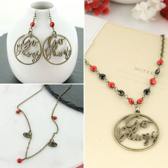 A 3-piece coordinating collection with necklaces designed for layering or you can wear separately! All pieces feature a vintage finish and enamel accents in coordinating school colors.
